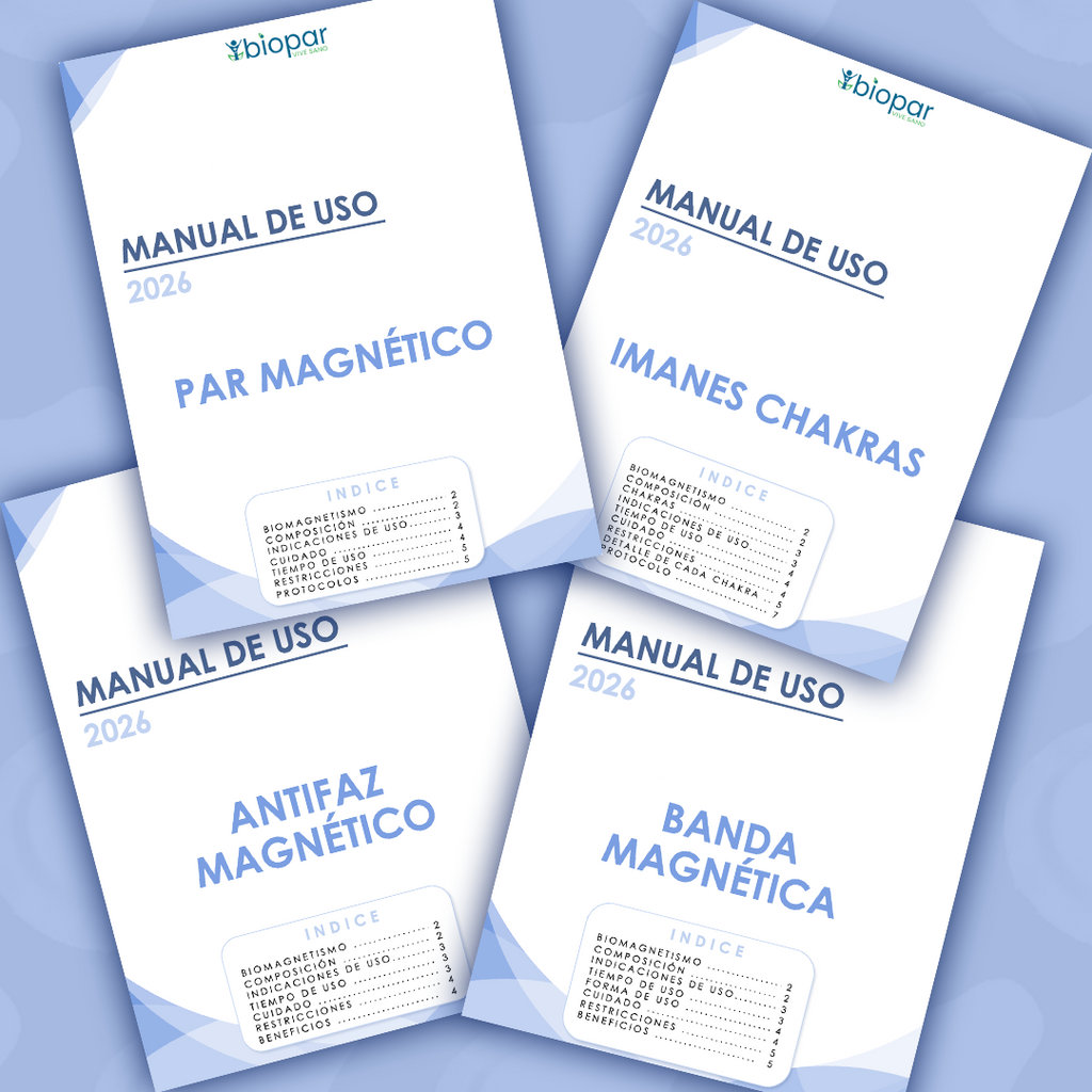· 4 manuales de uso (CHAKRAS, PAR MAGNÉTICO, BANDA y ANTIFAZ)